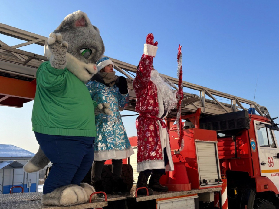 Как сообщили в комитете по делам молодежи правительства края, поздравления получили маленькие пациенты Детской краевой клинической больнице им. А.К. Пиотровича в Хабаровске. Добровольцы-спасатели в костюмах Дедов Морозов и Снегурочек поднялись на автовышке к окнам больничных палат. Также добровольцы-спасатели обошли все корпуса больницы — приветствовали и махали детям, которые наблюдали всё из окон больницы.