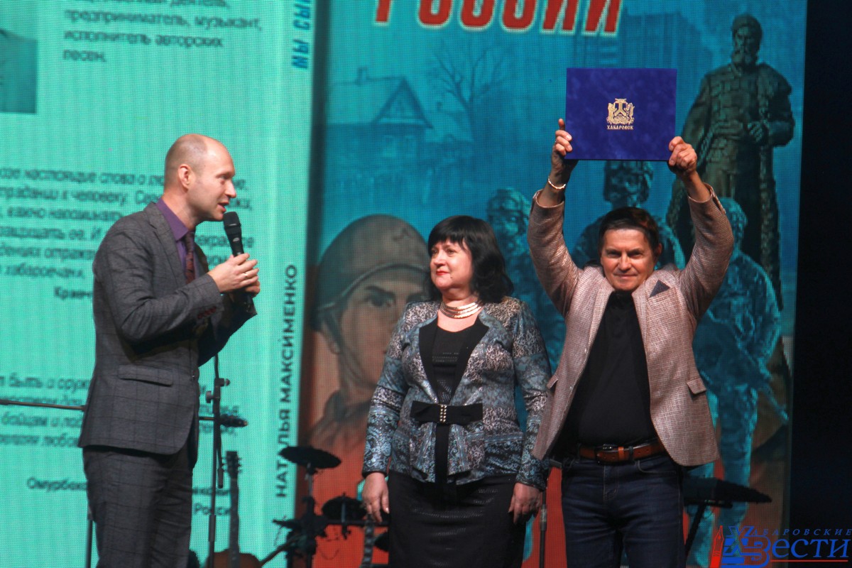 — Сегодня вместе со мной на сцене выступали и исполняли наши песни друзья и близкие нам по духу люди: группа «Гравитация 27», юнармейцы Юлия Савицкая и Анна Олейникова, наша хабаровская «звездочка», школьница Алла Качаева. Они живут с открытым сердцем, несут в мир добро, позитив и высокое творчество, — отметил Александр Максименко.