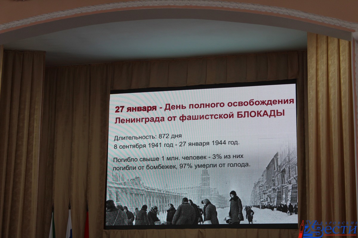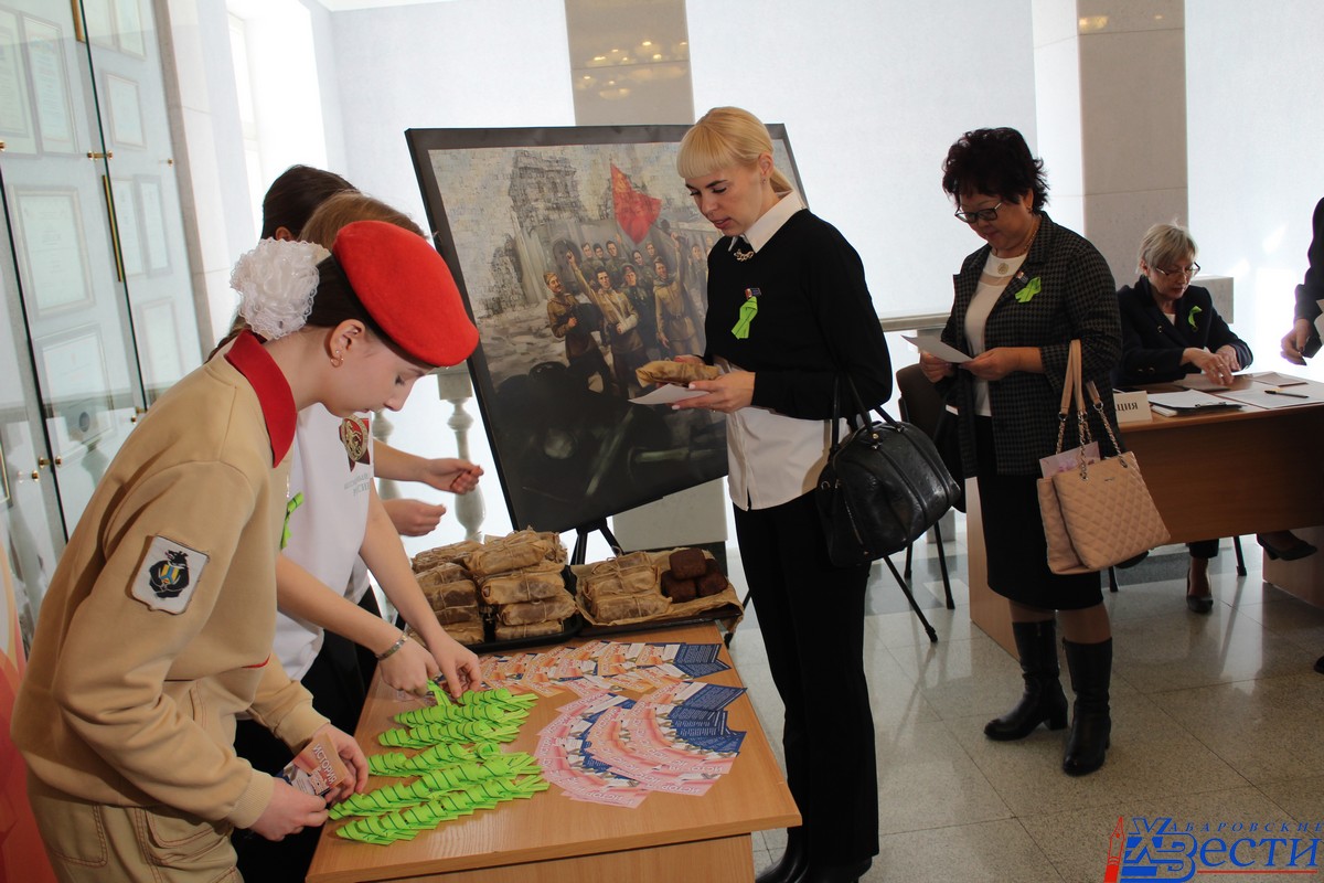 В день полного снятия блокады Ленинграда, 27 января, в торговых центрах, на железнодорожном вокзале, в образовательных учреждениях, а также в здании администрации Хабаровска раздавали символические 125 грамм хлеба и блокадные ленточки.