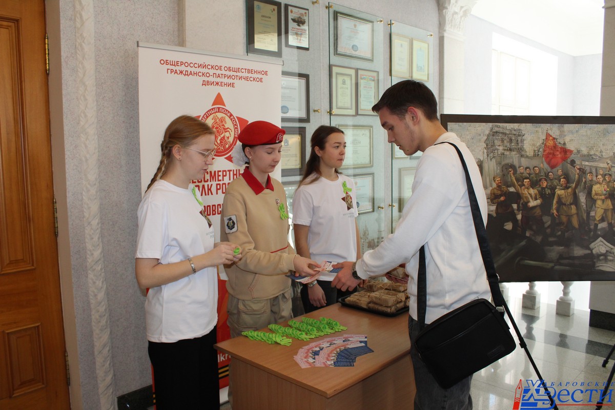 Организаторами акции выступили региональное отделение движения «Бессмертный полк России», центр патриотического воспитания Хабаровска и военно-патриотические объединения города. Также в холле администрации развернули выставку «Освободители Европы», посвященную освобождению европейских городов от немецко-фашистских захватчиков.