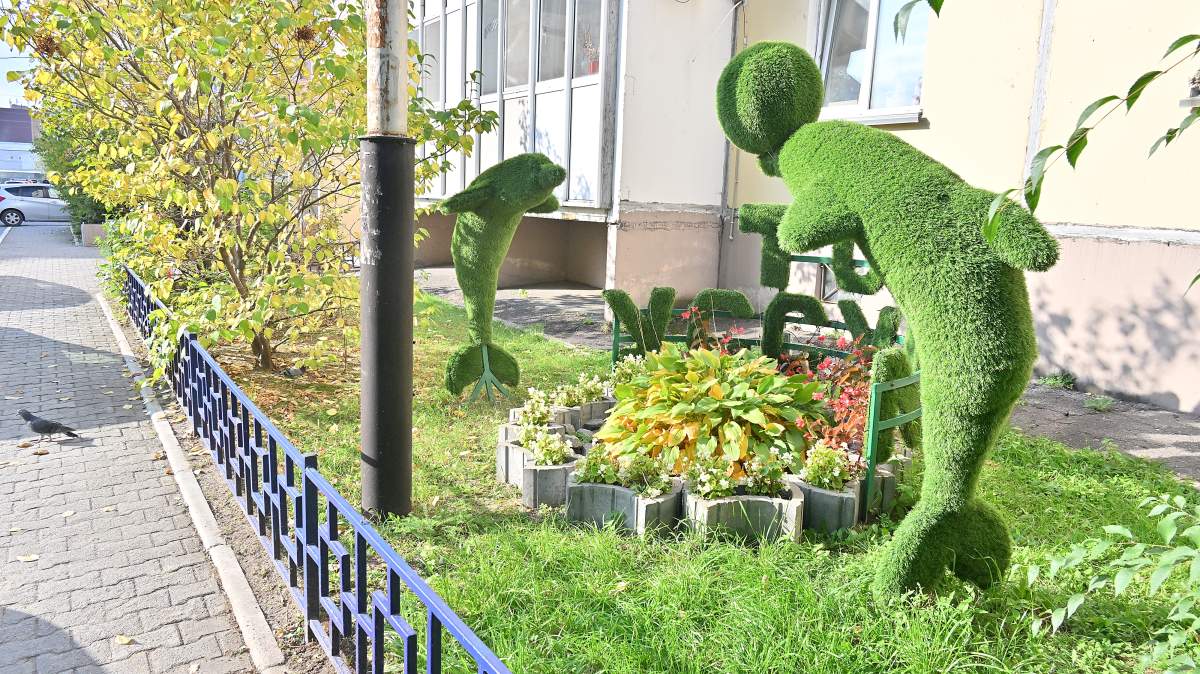 Пустые газоны, где раньше выгуливали собак, превратились в настоящие арт-объекты. Местные жители создали уникальные композиции: избушку на курьих ножках, огород Бабы-яги и другие интересные элементы. В планах — дальнейшее развитие этой концепции на каждом газоне.