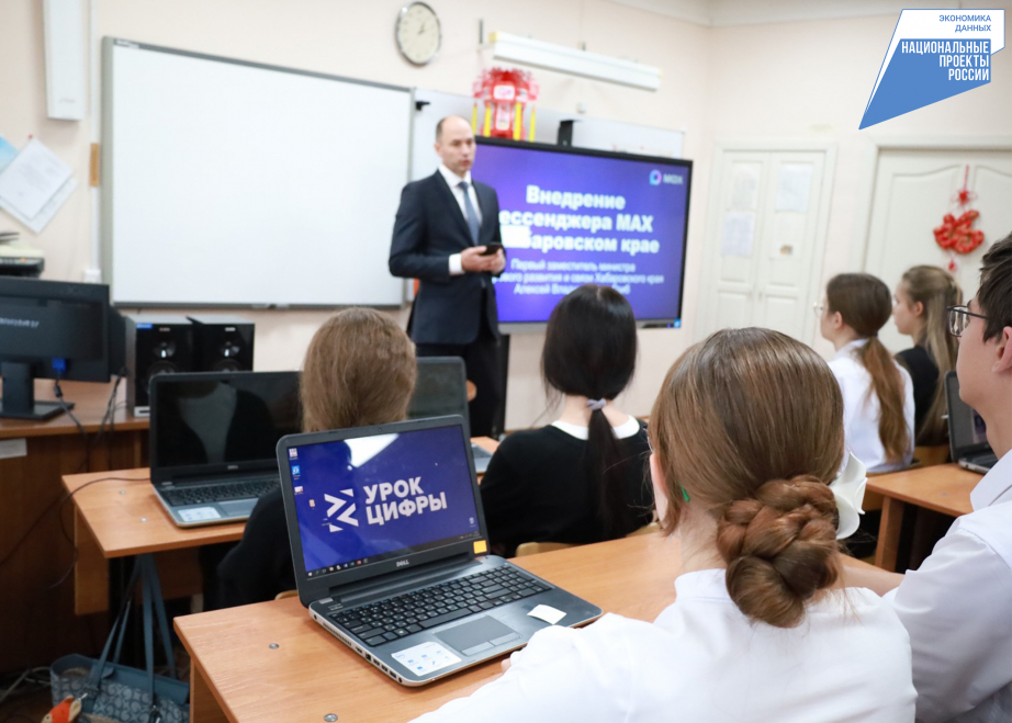 Сегодня «Урок цифры» прошел в хабаровской гимназии № 4. Его провел первый заместитель министра цифрового развития и связи Хабаровского края Алексей Гриб.