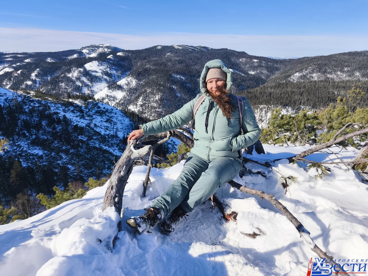 Достоинство этой вершины в том, что до нее просто очень легко дойти (и не оставить легкие вместе с желанием путешествовать по горам где-то на полпути). Все это время (примерно час от глэмпинга неспешным шагом) вас будут сопровождать самые отборные виды зимней тайги. Вы будете идти в меру дремучей тропой, вдоль которой растут многовековые аянские ели и пихты. При этом обязательно встретите пару-тройку цепочек следов зайца (а если очень повезет — то и увидите его вживую) и, вполне возможно, наткнетесь на дикушу (такая краснокнижная птичка вроде куропатки), которых тут немало. Кстати, они настолько непугливые, что вполне можно успеть записать видео и запостить потом в социальных сетях.