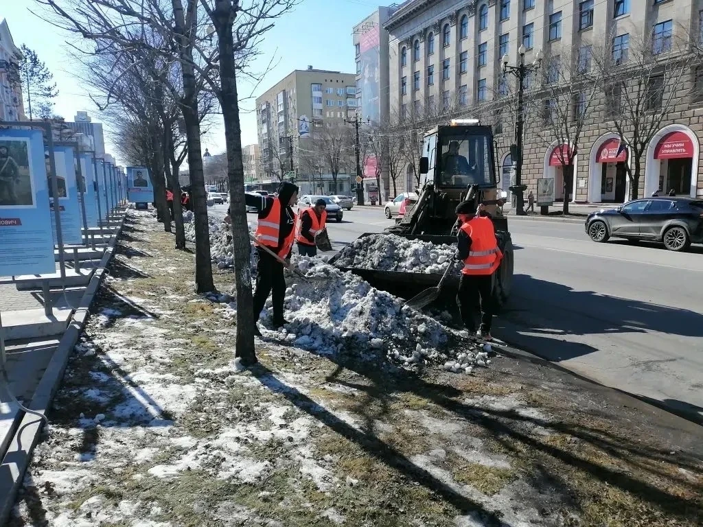В Центральном районе завершена очистка прибордюрной зоны в границах улиц Шевченко и Тургенева. Продолжается уборка песка, очистка тротуаров и парковочных карманов от улицы Пушкина до Комсомольской площади.