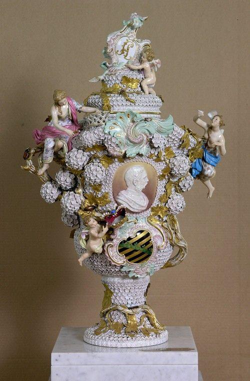 Альберт I часто использовал мейсенский фарфор в качестве дипломатических подарков и заказал у мастеров парные вазы по моделям XVIII века. На второй был портрет его жены, принцессы Каролы Шведской.