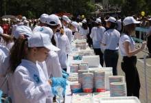 После этих слов обескураженная дама предложение приняла под аплодисменты собравшихся. Затем и все желающие, выстроившиеся в огромную очередь, стали получать свою порцию. К сожалению, как всегда бывает на таких мероприятиях, некоторые горожане отличились своей невоспитанностью и хамством, желая урвать кусок без очереди. Особенно удивили несколько дам лет пятидесяти, пролезшие под оградительными лентами прямо к столу. Таща за руку внуков, показали им «прекрасный» пример.