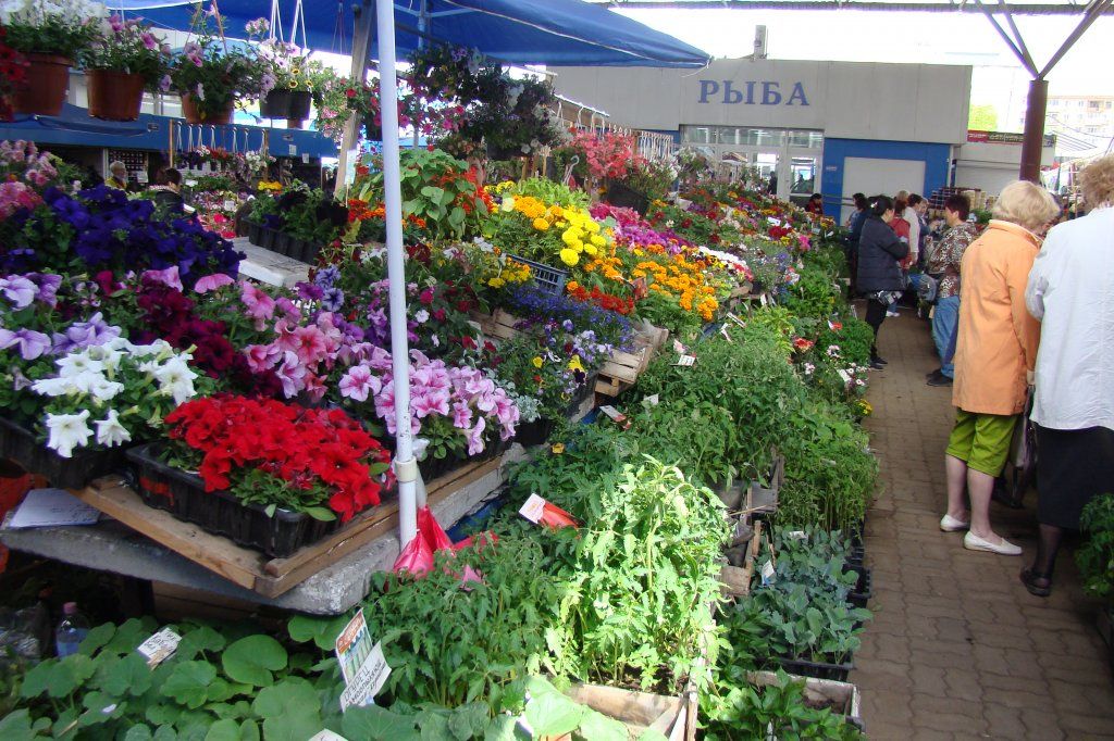 Ведро картофеля (10 л) — от 250 руб. и более в зависимости от качества и сорта. Земляника садовая — 150 руб. за стакан, саженец винограда — 700 руб., жимолости — 600 руб., смородины — 400 руб., облепихи — 450 руб. Сакура черенковая — 600 руб., розовая, привитая на вишне, — 1 300 руб. Саженцы пихты и ели продают с машины предприимчивые люди всего по 250 руб. Почему так дешево, догадайтесь сами. Цветов тоже хватает. Ромашки, хризантемы, петунии, бархатцы стоят от 25 руб. Куст сирени — 500 руб., пеларгония (герань в простонародье) в горшке, которую можно высадить в открытый грунт, — 350 руб.