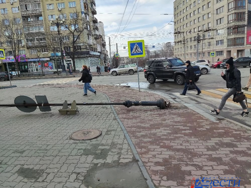 Поворачивая, он зацепил стойку светофора и буквально выломал ее.